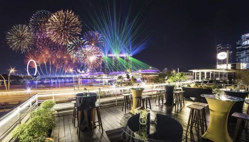 一边品味着新加坡著名的鸡尾酒:Singapore Sling,一边观赏着那如梦如幻的烟花表演。