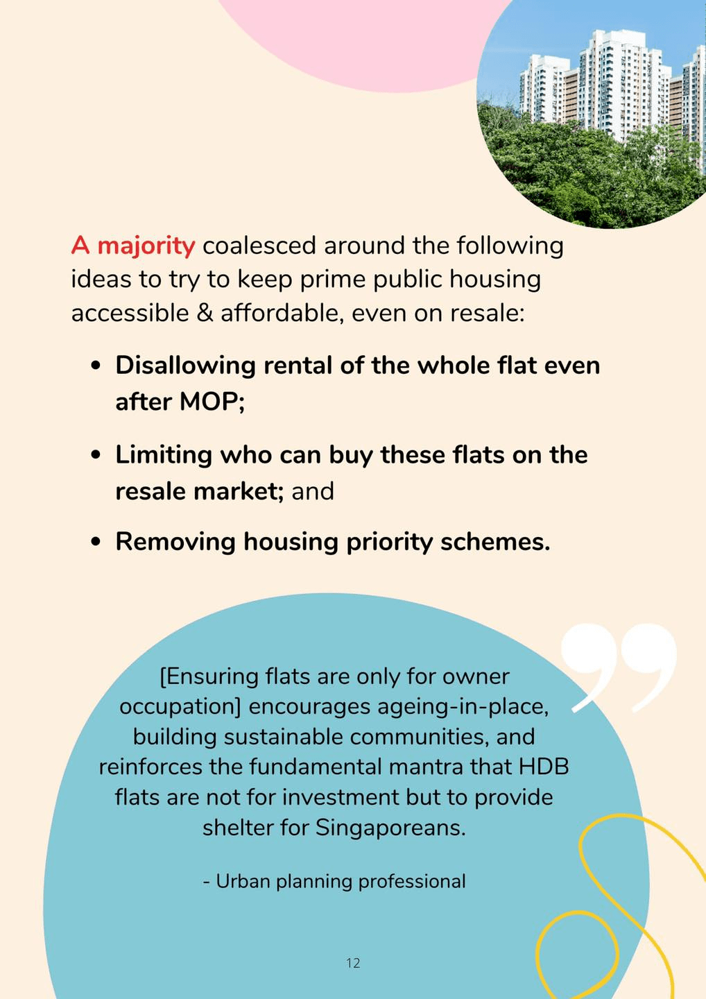 具体建议包括延长这类组屋的最低居住年限、提供较短的屋契、设计较小面积的单位等等。