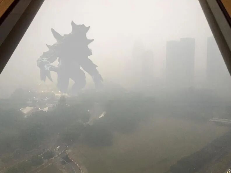 烟霾下的新加坡P上哥斯拉也毫无违和感,图源:mothership