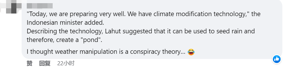 一些人表示自己在听到卢胡特所谓的“印尼拥有操控天气”的技术时,第一反应是觉得这是阴谋论......
