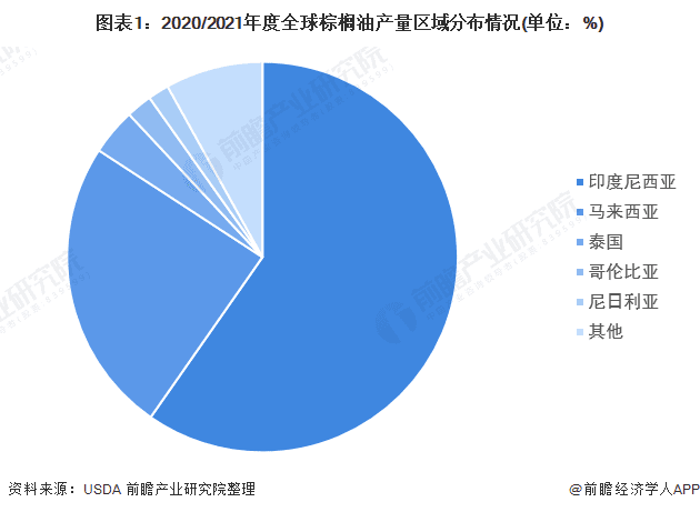 油棕树主要出产棕榈油,2020/21年度,印尼棕榈油产量达到了43500千吨,甚至占全球总产量的59.70%!