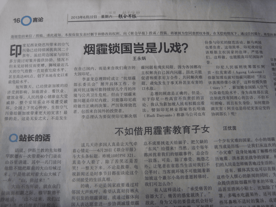 当然,有时候在新加坡上空出现的烟霾,也不每次都和印尼有关。