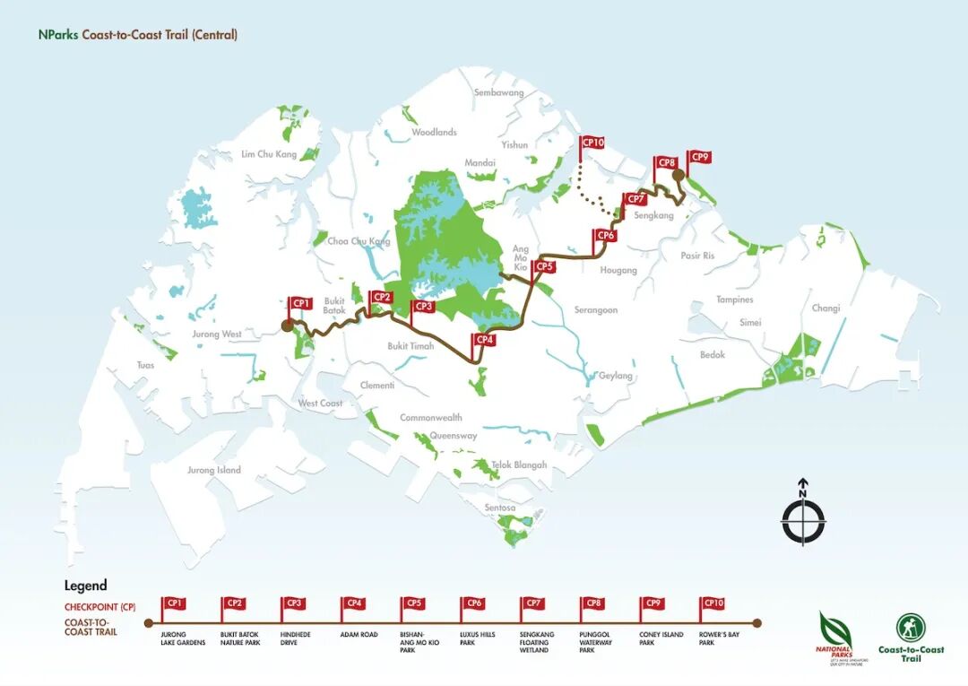 路线:Rowers’ Bay → Sengkang Riverside Park → Pasir Ris Park → Changi Beach Park → East Coast Park → Gardens by the Bay → Berlayer Creek