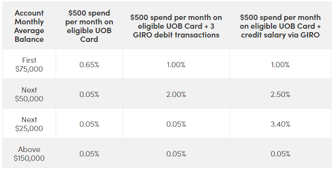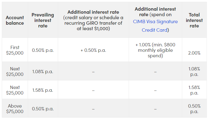 然而,请记住,上面宣传的利率仅适用于特定阶梯——3.40%的利率只适用于你首个125000新币存款之后的25000新币存款。