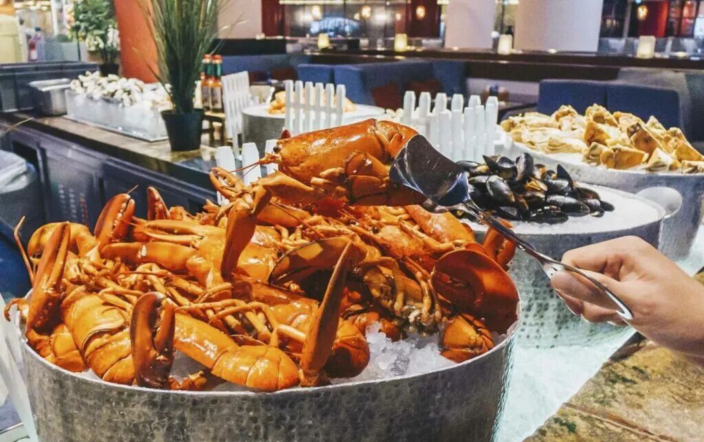 Atrium Restaurant(Holiday Inn Singapore Atrium)的自助超划算!一位成人同行,5 岁以下娃免费吃,6-12 岁午餐 25 新元 、晚餐 30 新元。