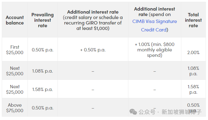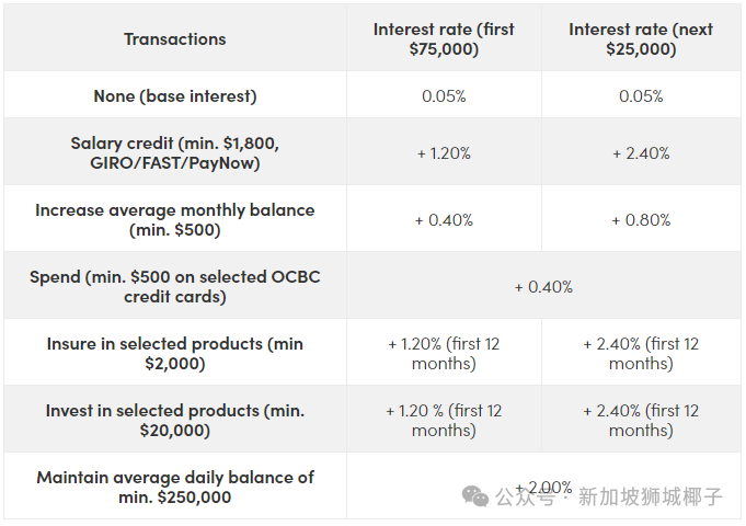 ①每月存入至少3000新币工资:+1.0(之前为1.5%)