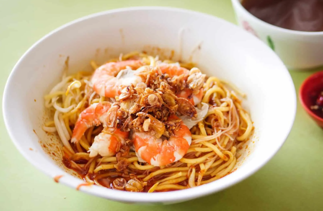 545 Whampoa Prawn Noodles(始于 1950 年代)常排长队,5 新元粿条配 4 只虾等食材,虾汤鲜浓,面条拌调料鲜香均衡,可加面、大虾等。
