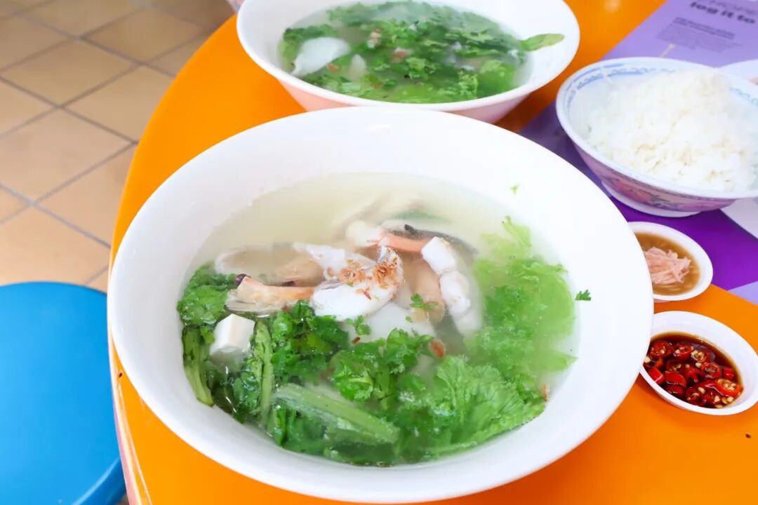 Tekka Centre 的Yi Jia Teochew Fish Porridge Fish Soup 常排队,售正宗清汤水煮鱼汤,可选多种主食与鱼类(4 新元起),配 tau cheo等调料更美味。