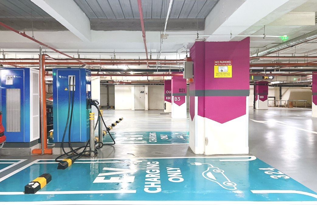 ION Orchard 去年新增电动车充电桩,含 100kW 直流快充与 22kW 交流慢充,果园途中补能便捷,可边购物就餐边为车辆充电。