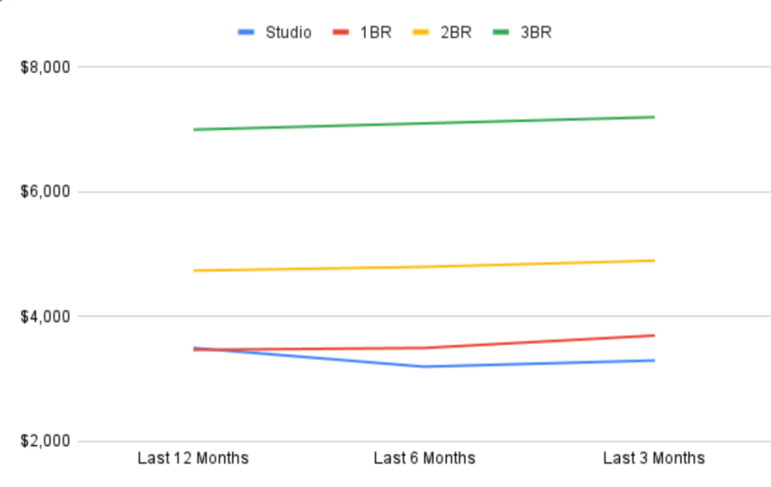 不同户型的大概租金水平如下: