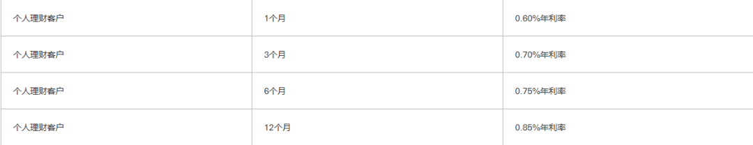 如果不满足以上条件,个人用户目前最佳定存利率只有:12个月的0.85%。利率很低,椰子建议找其他提供更高利息的银行存钱~