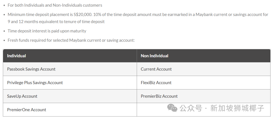 另外,该方案只针对新存入的存款,但要求也降到了20000新币(上个月还是50000新)。新存款意味着,如果你从丰隆金融内部其他账户里转存资金,将不会被视为有效,不能享受这个利率哦~