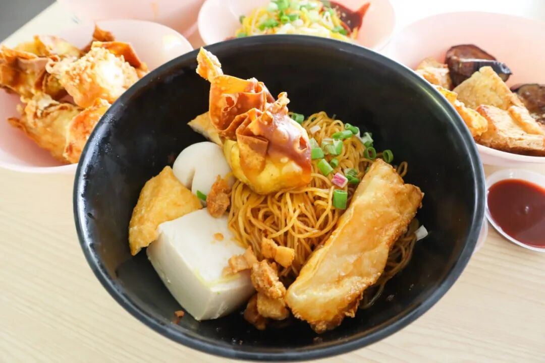 武吉美拉熟食中心的Red Sea Homemade Yong Tau Foo,夫妇俩每日现做近 40 种鱼酱酿品,配浓郁肉汤或叻沙,另有 Premium Egg Noodle等,风味出众。