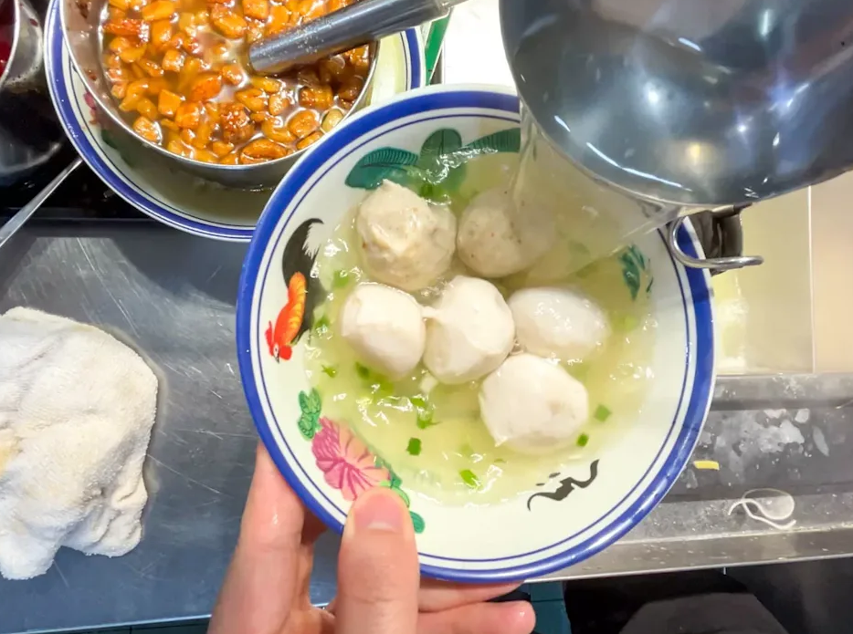 Fishball • Meatball Noodle,坚持每日手工制丸,鱼丸弹牙味浓、形状不规则,供应汤 / 干 Fishball Noodles 及Fishball Soup ,肉丸含比目鱼碎,风味佳。
