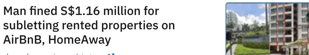 这个情况说的就是老曾了。一般情节下,短租行为被邻居举报证实,屋主和中介面临最高20万新币的罚款。(所以老曾夫妻短租行为实属超标)