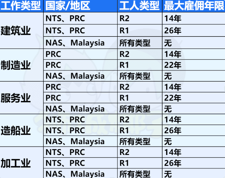 从上面的规定来看,新加坡将打工人分了类,国籍和工种都是分类的依据。