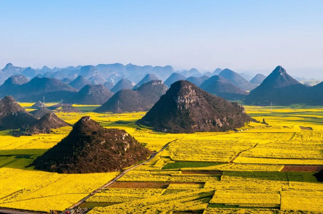 云南罗平以油菜花闻名,二月底盛开,可赏景购蜂蜜等。金鸡峰、九龙瀑布必去(门票 11.65 新元起),酷航往返新加坡约 597 新元。