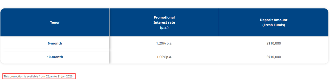 如果起存金额再20万新币以内,优惠利率只有1.20%。