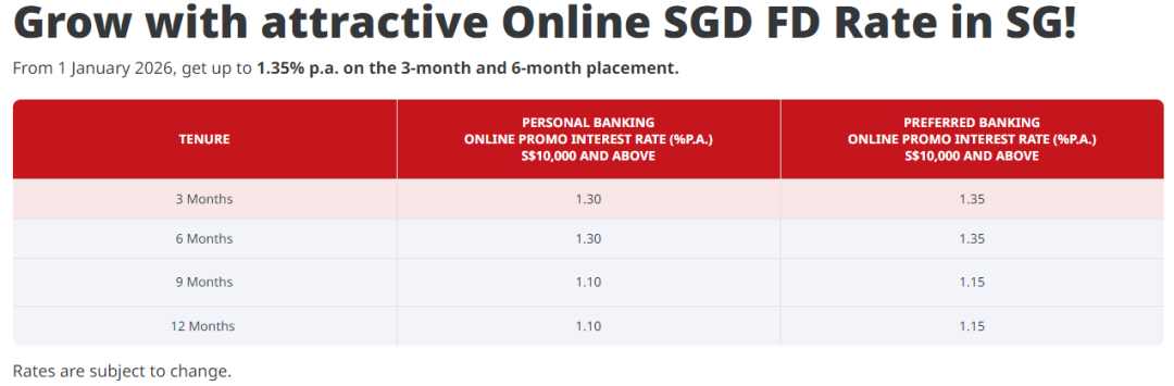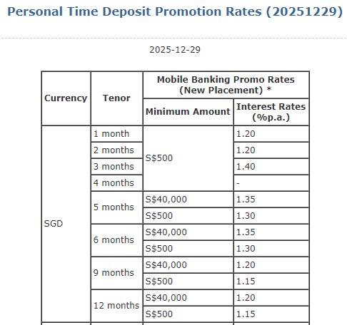 如果是更高端的preferred banking,利率会涨到1.35%。但需要注意,不管哪种存款模式,都需要通过电子银行存款至少1万新币才能享受利率优惠。