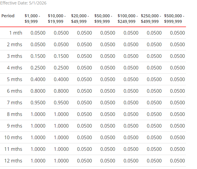和上个月相比,花旗银行最佳定存利率没有变化,依旧是:3个月的1.00%。