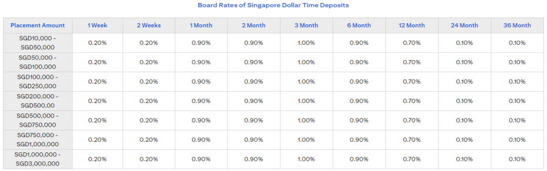 但是,最佳利率不管存入多少钱和中国银行保持一致,为:3个月的1.40%。但需存够20万新币。