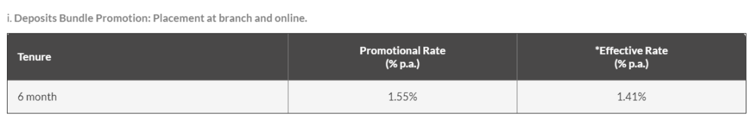 马来亚银行促销定存活动,同样也只提供一个选项:存6个月,利率1.55%。