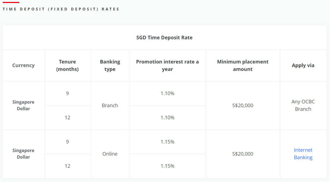 无论是通过电子银行、手机银行或者去柜台办都行,但最低存款额为20000新币,且利息只会在定存期结束后才会一次性支付。