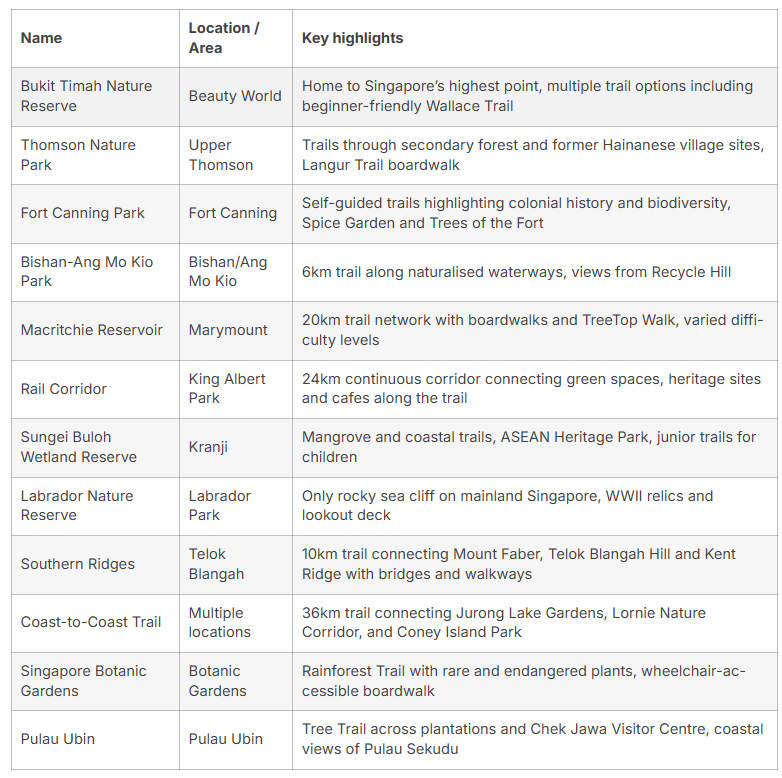 - 椰子精选 新加坡了12 条轻徒步路线,遍布全岛各区域,适配不同需求与体力。