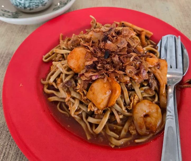 钟爱炒萝卜糕的朋友,去巴淡不妨试试Abun Cha Kue。小摊开在Kopi店里,黑炒萝卜糕淋上甜黑酱油,糕体大块够实在。