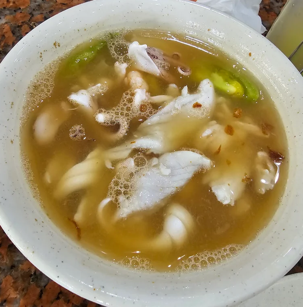 鱼片汤售价58,000 印尼盾起,也可选择搭配虾或是虾和鱿鱼的款式,配料同样新鲜,适合想来一碗清淡暖胃汤品的人。