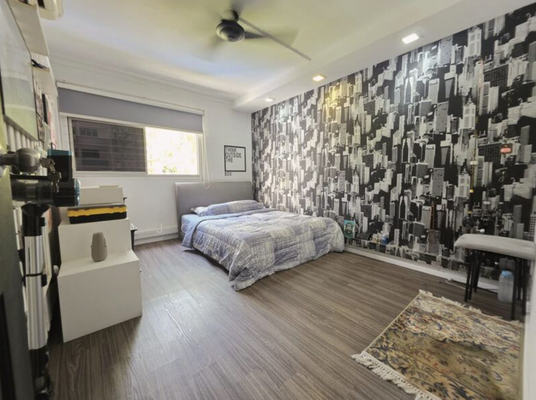 和上面那套组屋相隔不远,这套组屋面积刚刚超过1900平方英尺,入户门通向带两个独立入口的阳台,适合改造成双钥匙户型。