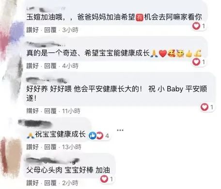 还有很多网友分享自己或者自家孩子的经历,真诚地祝福玉媗平安健康地长大。
