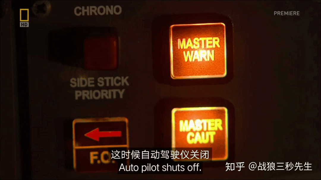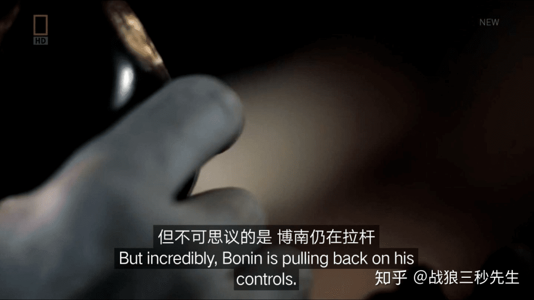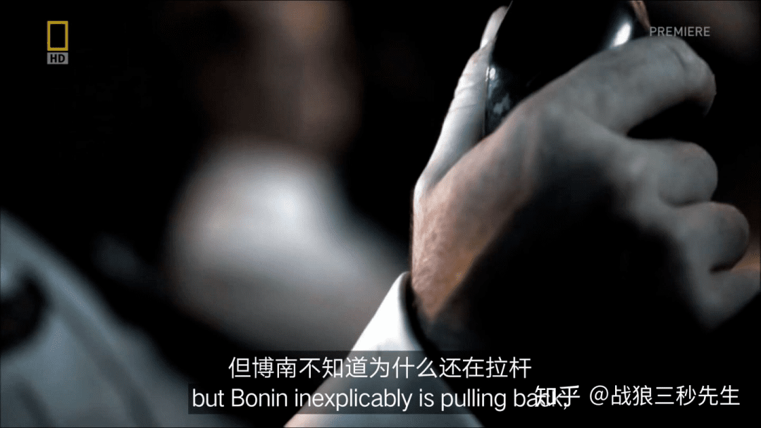 当时,飞机因为受到乱流的影响而向右倾斜。于是博南一方面将操纵杆向左修正,一方面非常不理智地将自己一侧的操纵杆用力往后拉!(“博南拉杆”出现了!)