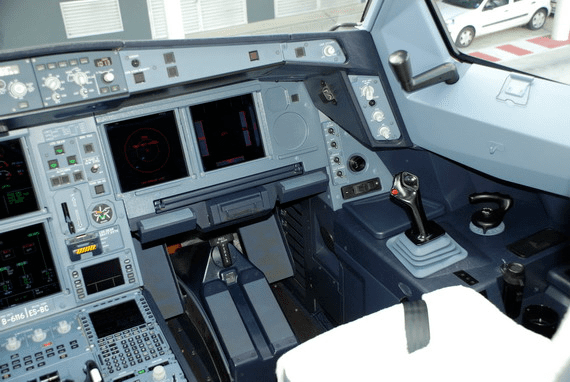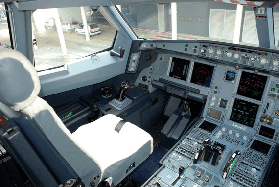 当时A300-200型号飞机操纵杆,在两个驾驶员的侧边,图源:新浪