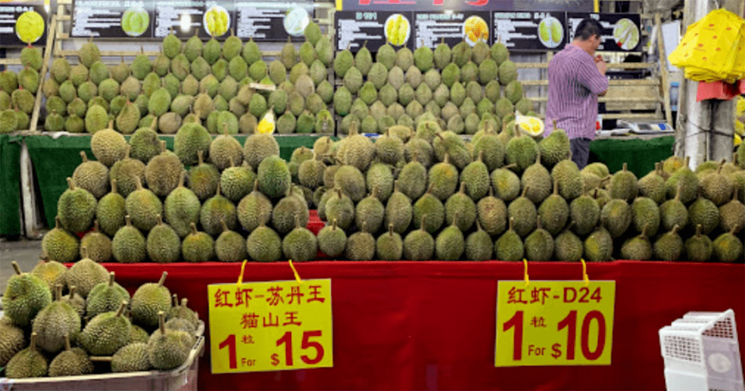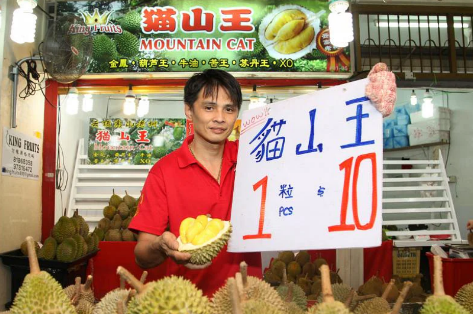 2022年上个榴莲季,老树猫山王一公斤报价在28新币,买上一个,一星期的饭钱可能就没了......