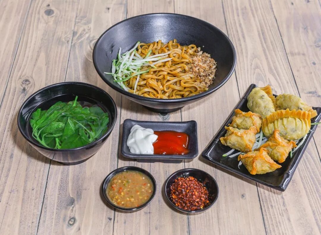 奥斯汀山 Restoran Signature Pan Mee(24 小时板面)全天营业且经久不衰,板面厚似乌冬有嚼劲,可配辣椒,还提供含米饭、汤等的套餐,Signature Asam Pedas Sotong Rice (RM12.90)。