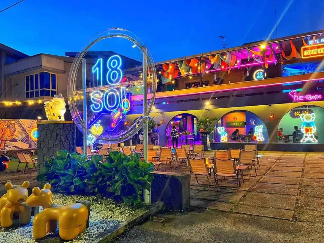 Soi 18 以泰式美食闻名,招牌泰式云吞面(RM14.90)曾是唯一焦点,现菜单扩展至Thai Volcano Pork Ribs (RM38)等,还提供Claypot Rice(约 RM17.5),也有西式菜肴。