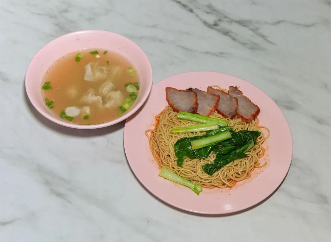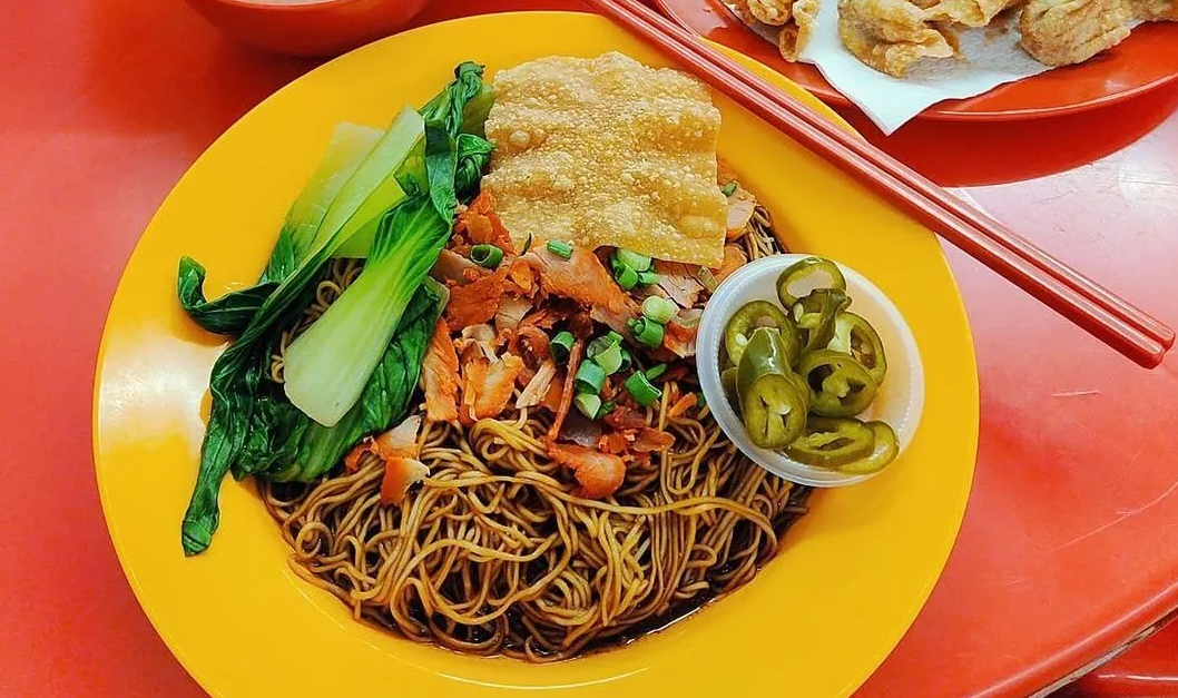 新山的 Restoran Hw Wan Tan Mee 是宵夜热门地,营业至凌晨 3:30,Wan Tan Mee (小 RM12.90 / 大 RM16.90)有黑白酱可选,还售 Fried Pork Cake、Stuffed Tau Pok等。