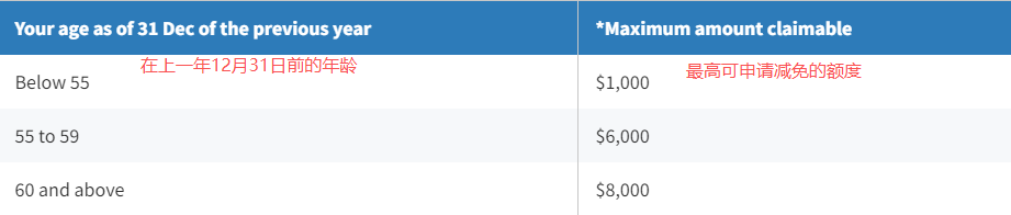只要你受雇,或者有养老金、行业、生意、专业或职业收入,你都可以获得这项税收减免,可减免1000-8000新币,具体额度如下: