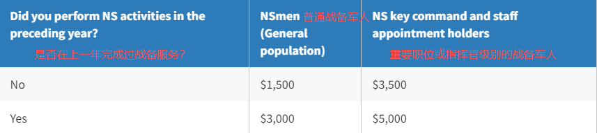 另外,战备军人的妻子和父母也可分别享有750新元的估税减免。对于父母来说,无论有多少个孩子是战备军人,都只能获得一份750新币减免。