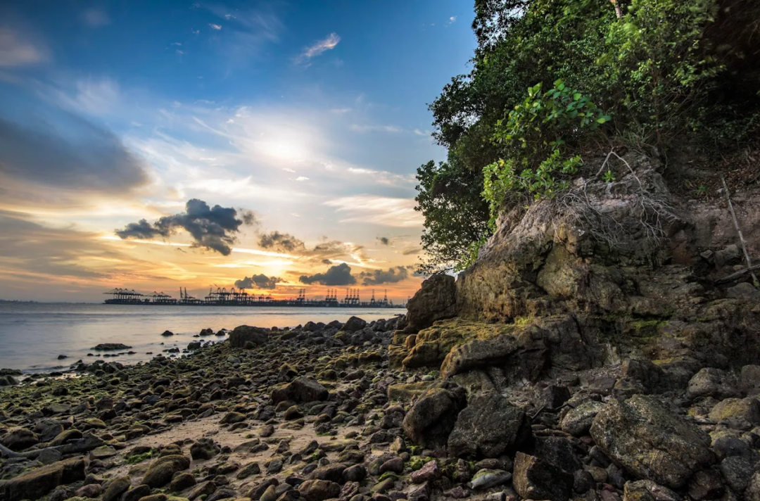 Punggol Beach 因战时历史列入国家遗产,有着别样美景,海岸线遍布各式岩石,可眺望科尼岛与乌宾岛,是日出日落时疗愈散步、逃离城市独处的绝佳之地。
