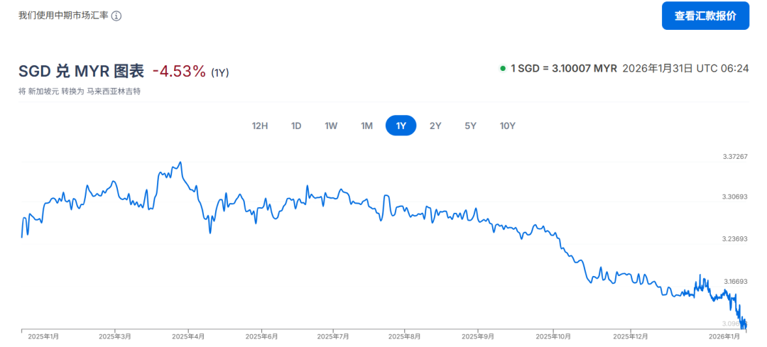 唯一出现例外的只有新币兑令吉的汇率。因为令吉持续升值,汇率在一年内大概微降了0.1-0.2个基准点。但在新加坡持续扩大进口商品来源的情况下,带来的物价影响被降到了最低。