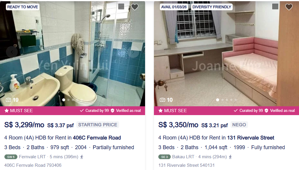 就连新加坡“郊区”盛港,一套四房式组屋(还不是公寓!),整租月租金要3000新币,租单间也要850新币......