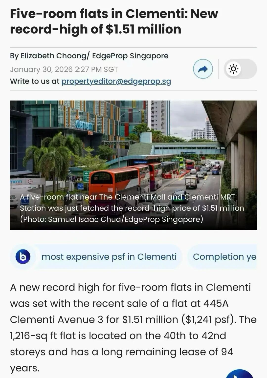 当然,有些地段好的比如大巴窑或者红山的经常破百万新币,最新消息是金文泰一个五房式组屋单位刚刚卖出了151万新币天价!