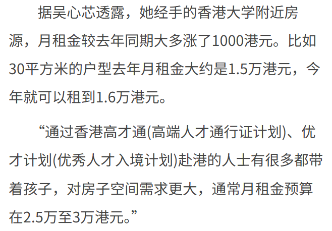 至于租房方面,下面这则新闻可以略窥一二了......月租1.6万港币可能只能在港大附近租个30平米的,很多人的预算都来到了2.5-3万港币!