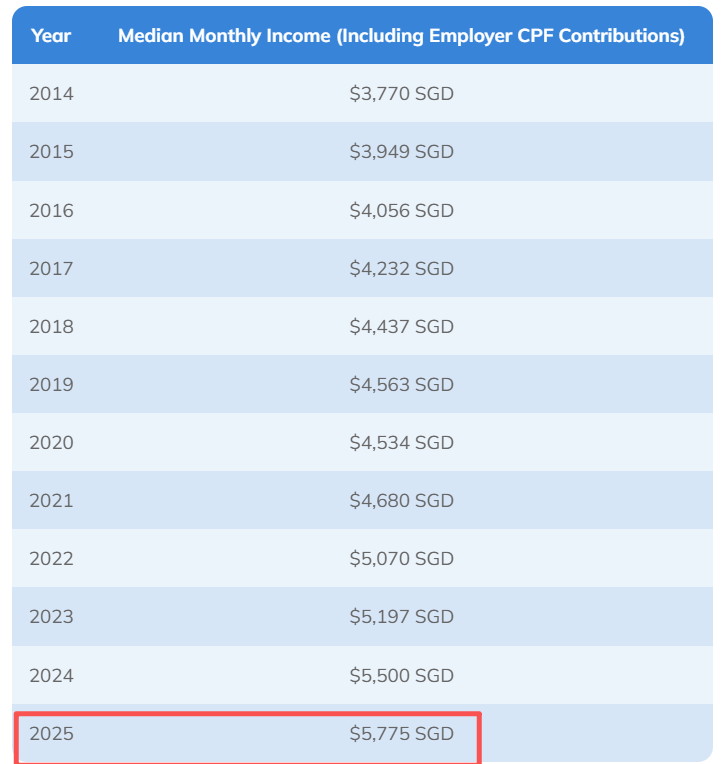 而新加坡去年的月薪中位数,为5775新币。
