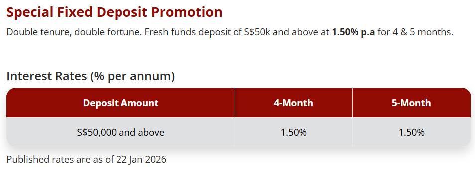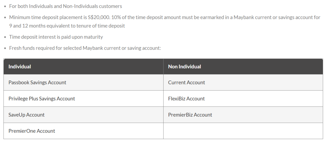 另外,该方案只针对新存入的存款,但要求也降到了50000新币。新存款意味着,如果你从丰隆金融内部其他账户里转存资金,将不会被视为有效,不能享受这个利率哦~
