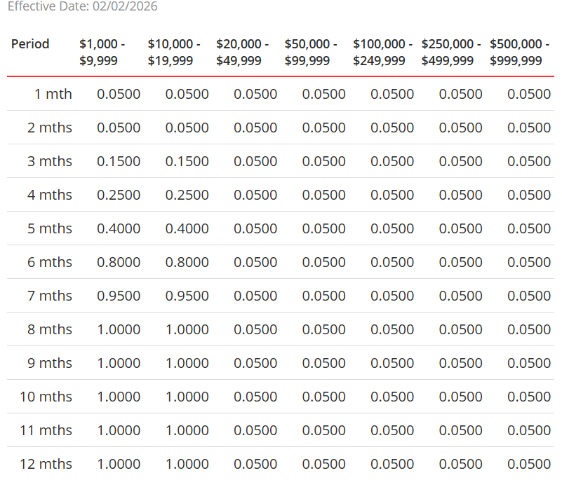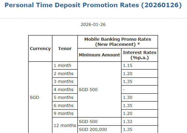 最低存款金额:500新/200000新币(只针对存12个月的选项)