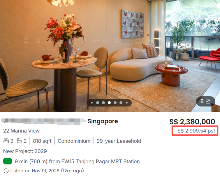 1)核心中央区(CCR)公寓,目前在售的房源大多数尺价在2800-3200新币之间(除了一些豪宅项目):