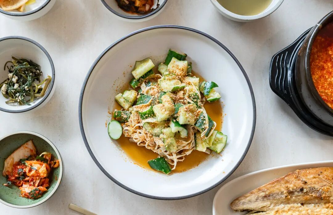 Gwanghwamun Mijin,主打新鲜荞麦面!招牌 Buckwheat Noodles(S$15)含两盘自制面条、冰沙状现煮汤底,配调味紫菜,加白萝卜丝等食用更具风味。